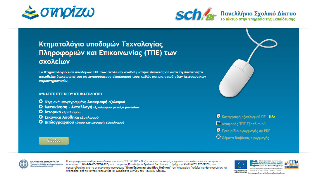 - Καταγραφή εξοπλισμού (βάσει της εν λόγω εγκυκλίου)